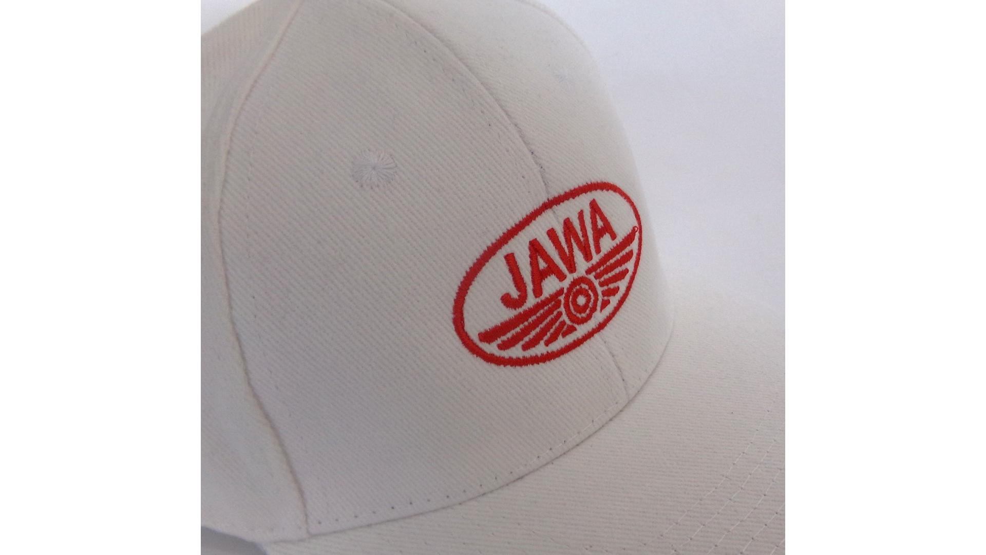 Czapka z daszkiem, logo JAWA, biała