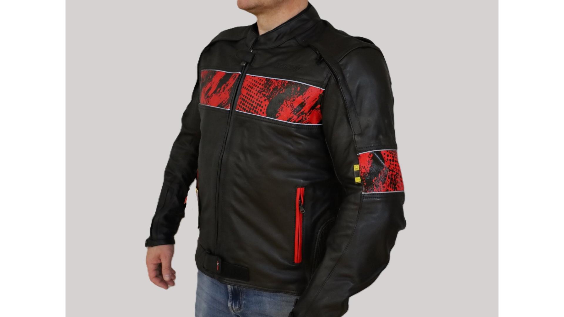 Kurtka motocyklowa, męska, skórzana, czarno-czerwona, rozmiar L
